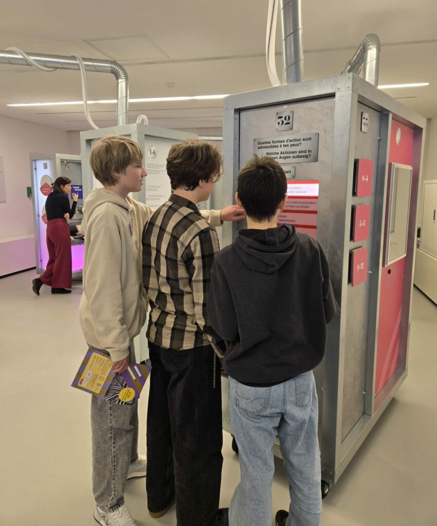 Die Demokratiefabrik ist eine interaktive Ausstellung. Sie fordert Reaktionen junger Menschen zu unterschiedlichen Themen wie Diskriminierung, Moral oder auch Demokratie heraus. Vorurteile werden infrage gestellt, Meinungen und Positionierungen dazu werden erwartet.